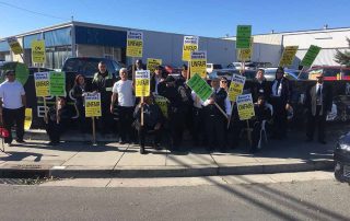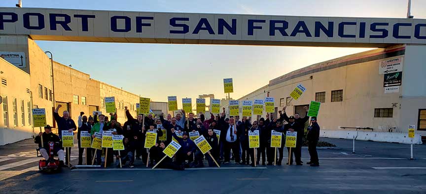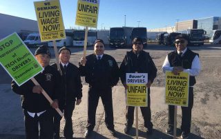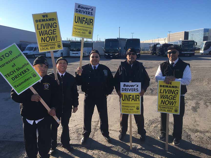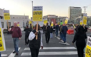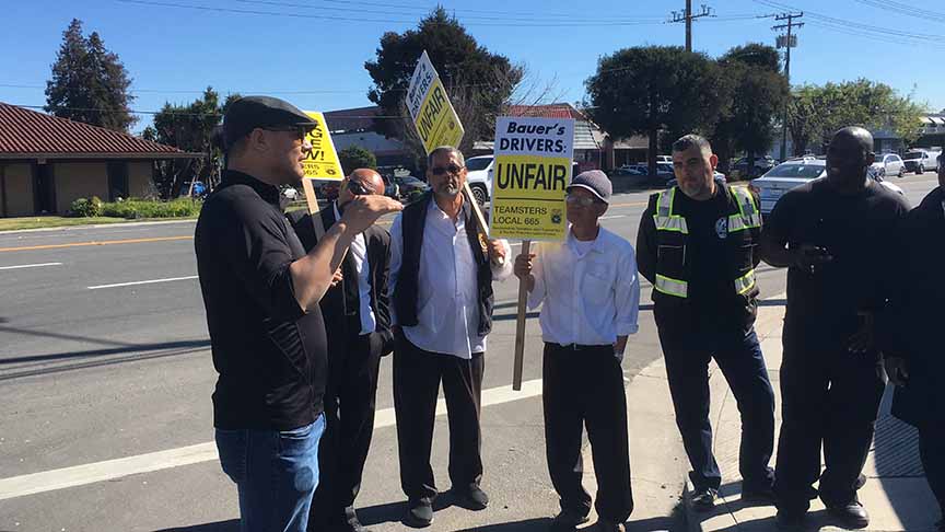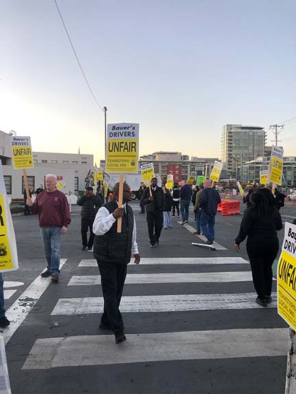 Teamster drivers with Bauer’s Intelligent Transportation held a one-day action on Thursday at Pier 50 in San Francisco and Santa Clara. Teamsters Local 665 members have been fighting for a contract since September that will provide the same fair pay, benefits and retirement.